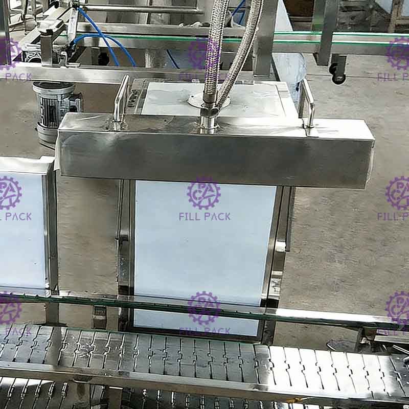 Then the jars will be pushed by pushing cylinder to under filling head, then filling start;