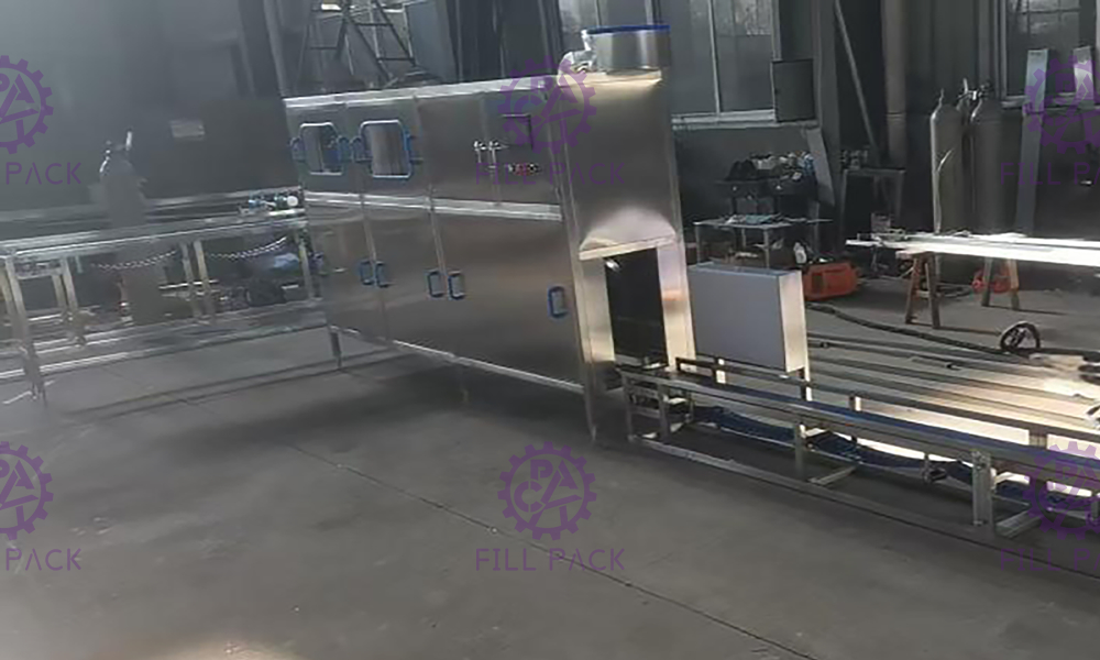 The Gallon water production plant includes Semi-auto de-capper and washer, Monoblock rinser-filler-capper,Roller conveyor, Label shrink tunnel, Checking Light,Solid Ink Roll Coding Machine