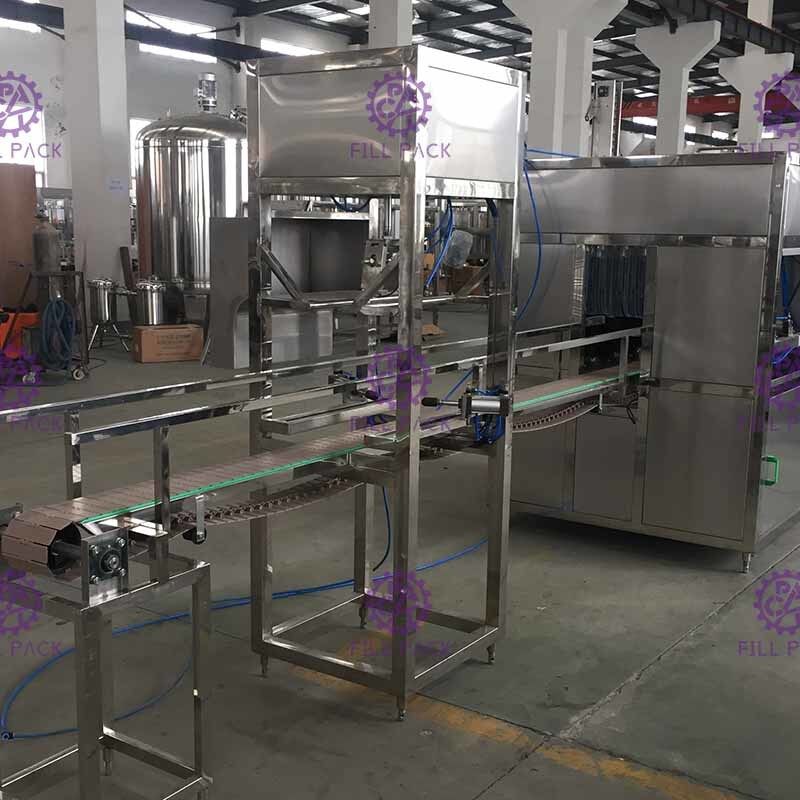 This machine is driven by cylinder, controlled by PLC; Automatic working by barrel checking; De-capping head is composed by claw device and cylinder, de-capping head position can move up and down, claw device can be adjusted slightly to be suitable for different caps. When the gallon bottle comes into the machine, the de-capping head will go down and claw device will hold tightly barrel cap sides, and then lift the barrel to take off the caps; And when the caps are taken off, the compressor air will blow the caps into cap hopper, then fall outside into client’s own holder; The claw pressure is adjusted to protect caps;