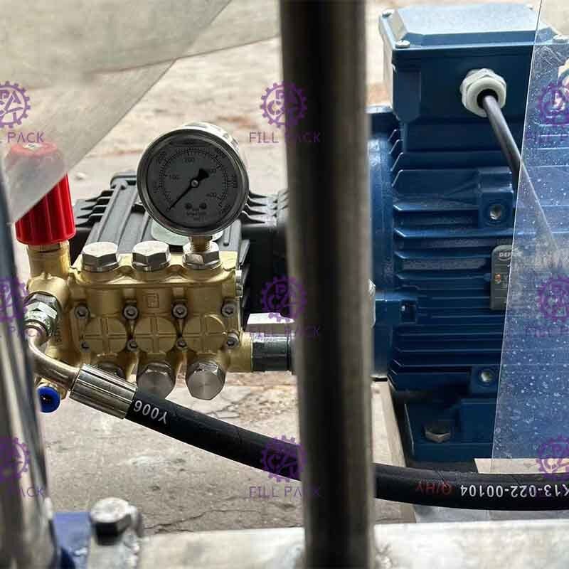 The structure adopts high-pressure internal rinsing, the precision high-pressure nozzle pressure is adjustable from 2-15Mpa, rotates in the bottle during working; and the external brush rotates and spray water, so as to achieve the effect of overall cleaning . It is a new product developed on the basis of introducing similar products at home and abroad and combining our factory's many years of production experience. This machine has the advantages of high degree of automation, compact structure, beautiful appearance, convenient operation and maintenance, safety and reliability, and continuously adjustable production capacity.