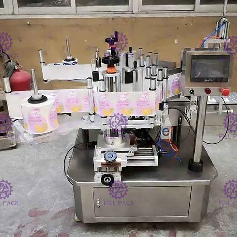 Semi automatic double sides sticker labeling machine is suitable for Flat bottle or square bottles with two labels, It uses PLC control system and touch screen which makes machine easy to operate and intelligent. It applies server motor, so it realizes real closed loop controlling. The machine will stop working and give out signals when there is no label or no product. It has the characters of high accuracy, steady performance and Long using life. Used stainless steel and aluminum alloy with the machine body, good in looking and high in performance. It is suitable for single-side and double-side labeling of flat bottles, round bottles and square bottles, such as shampoo flat bottles, lubricant flat bottles, hand washing liquid round bottles and other two-side labeling.
